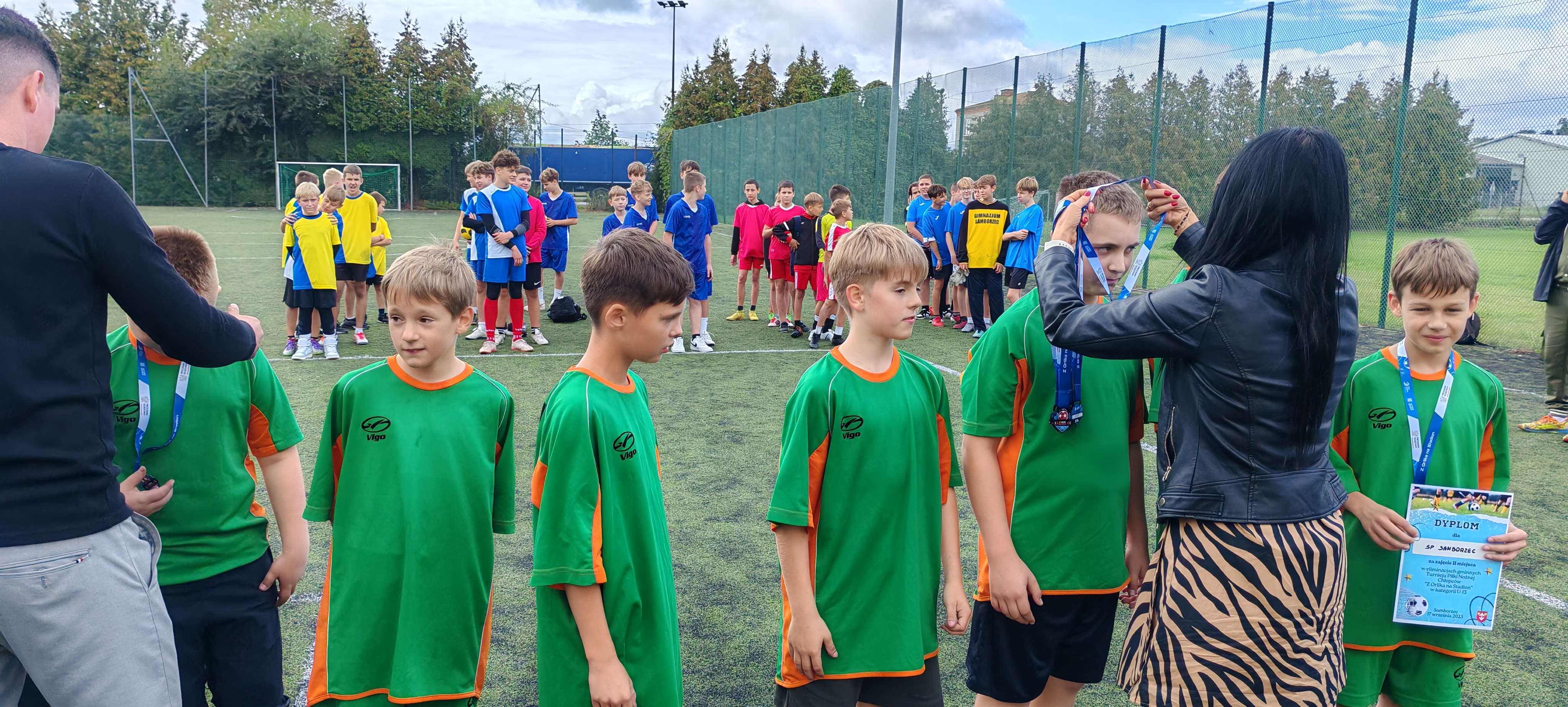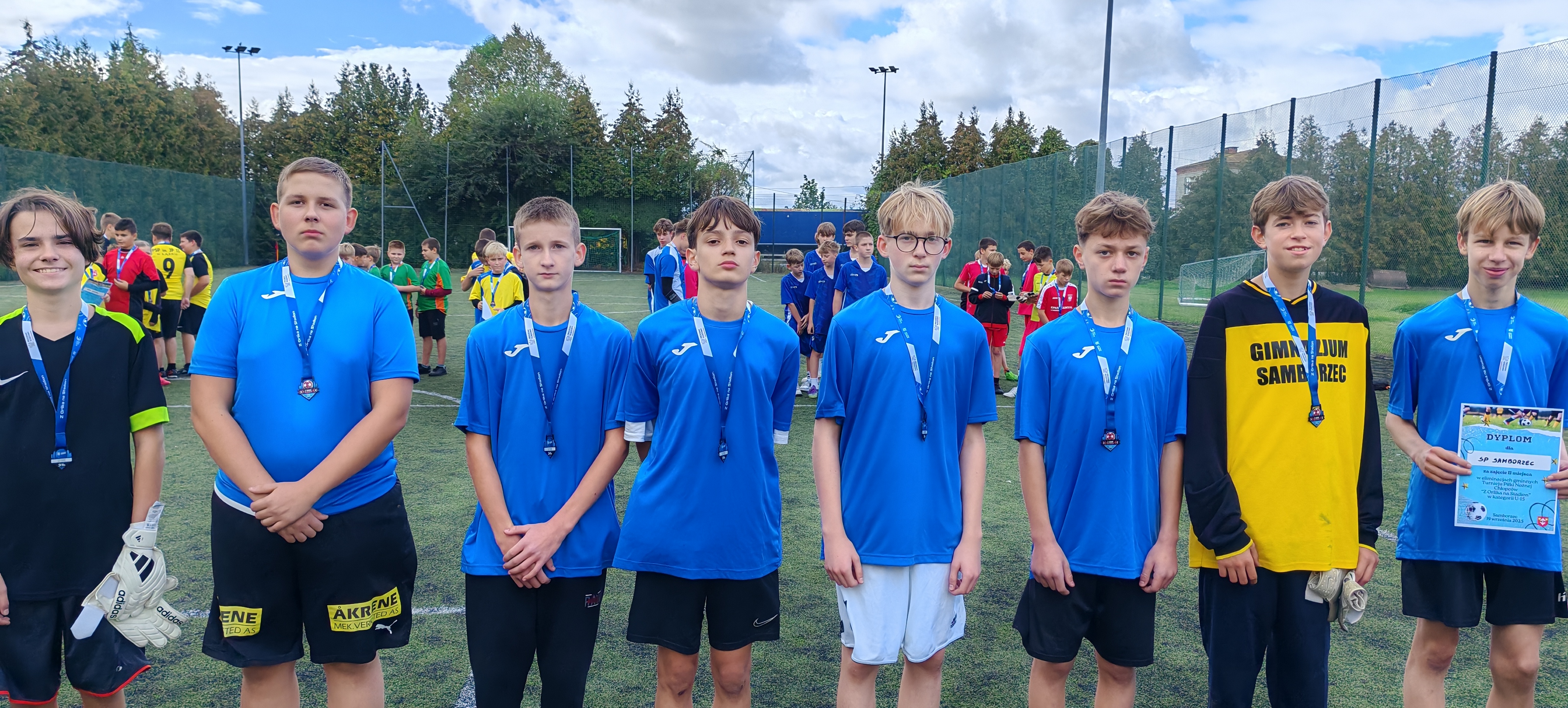 W dniu 17.09.2025. na Orliku w Samborcu odbył się Turniej piłkarski ,,Z Orlika na stadion".Naszą szkołę reprezentowali uczniowie w kategorii U13 oraz U15, którzy po bardzo równej i zaciętej walce zajęli bardzo dobre 2 miejsca w swoich kategoriach. Po zakończonych zawodach wszyscy otrzymali od władz Gminy pamiątkowe medale oraz dyplomy. Serdecznie gratulujemy naszym sportowcom.