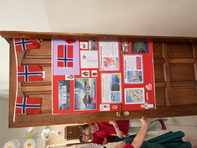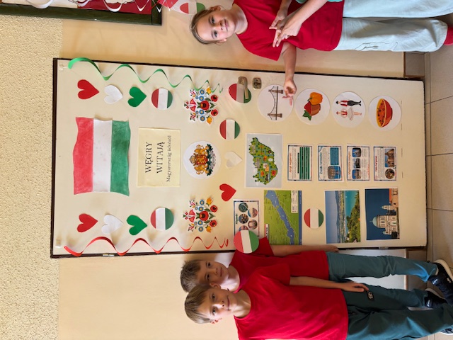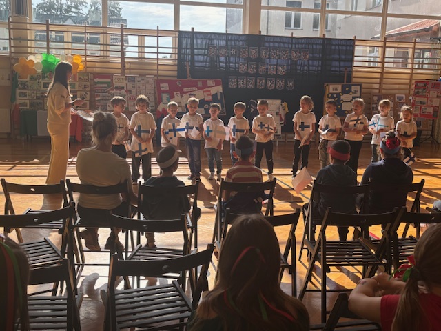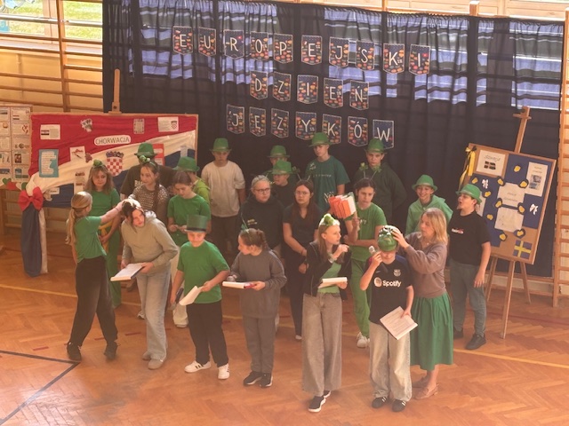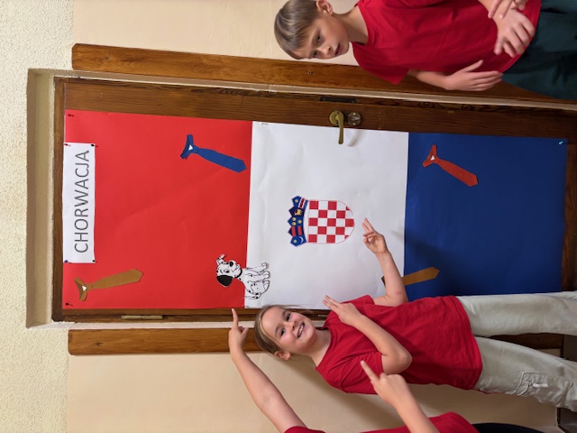 Nie zabrakło też barwnych dekoracji, a drzwi sal lekcyjnych zostały ozdobione w barwach wylosowanych krajów, co nadało całej szkole wyjątkowego, międzynarodowego charakteru. Dzięki wspólnej pracy uczniowie przekonali się, że Europa jest różnorodna, a jednocześnie bardzo bliska każdemu z nas. Całość imprezy przygotowała i poprowadziła pani Barbara Kossak, której serdecznie dziękujemy za pomysł, zaangażowanie i wspaniałą organizację.