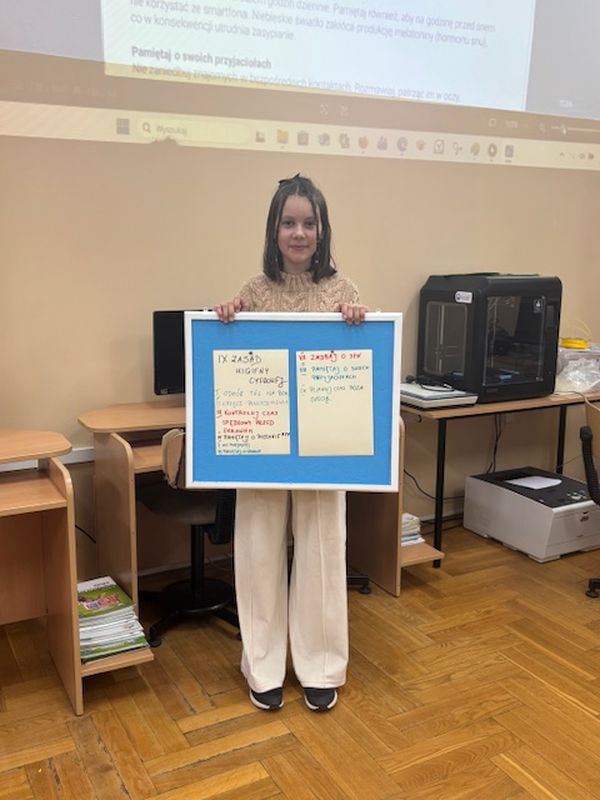 Zachęcamy Państwa do rozmów z dziećmi o tym, czego dowiedziały się podczas zajęć, oraz do wspólnego wdrażania zasad higieny cyfrowej w domu. Wspólne działania szkoły i rodziców przynoszą najlepsze efekty.