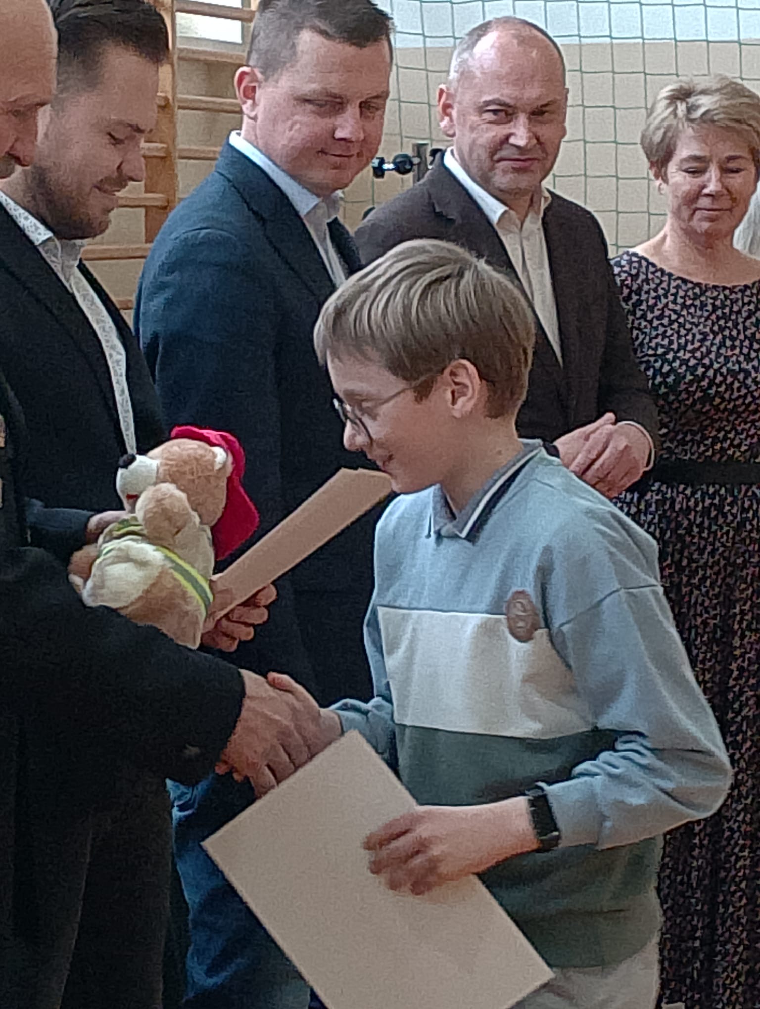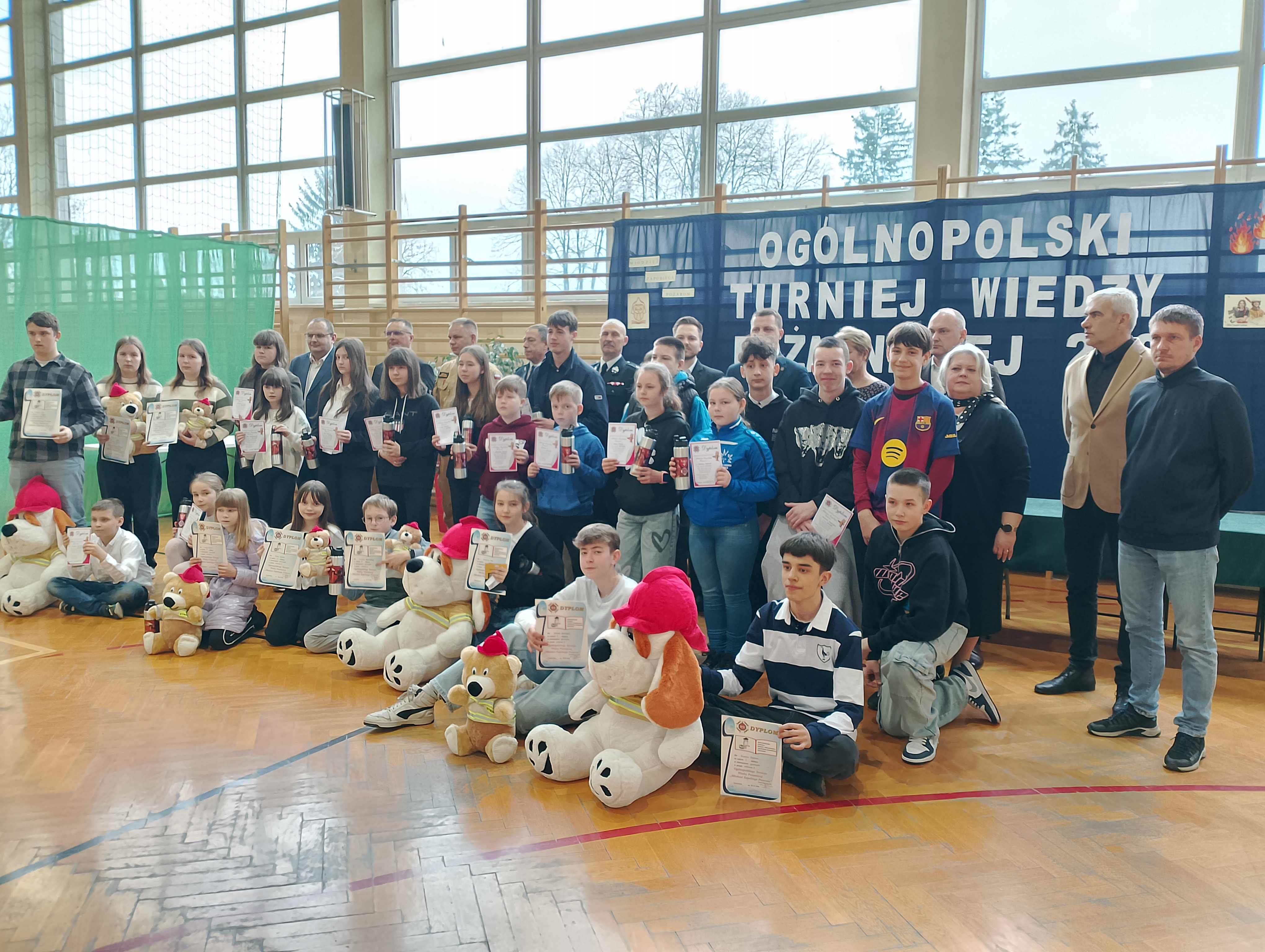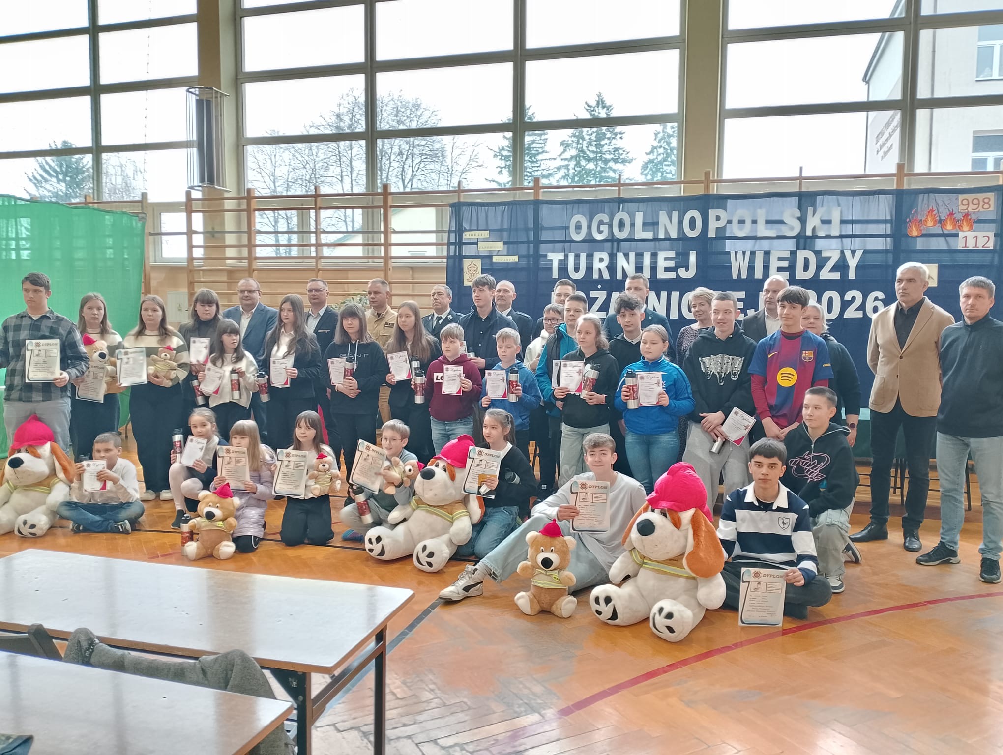 Nasza szkoła odniosła wspaniały wręcz imponujący sukces w Ogólnopolskim Turnieju Wiedzy Pożarniczej, zdobywając niemal wszystkie miejsca na podium i udowadniając wysoki poziom wiedzy oraz zaangażowania uczniów. W rywalizacji wzięli udział: Kamil Zasuwa i Wiktor Stroiwąs z klasy VIII, Julek Stępiński z klasy V, Zuzia Róg z klasy IV, a także nasze najmłodsze, ale niezwykle ambitne uczestniczki – Marta Siudak i Lena Korycińska z klasy II. Podczas eliminacji gminnych nasi uczniowie zaprezentowali się znakomicie.